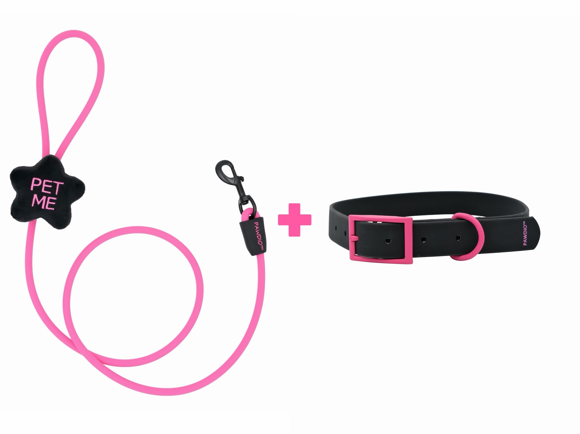 PAWDIO™ Mood-Expressing Leash + Collar Set – PET ME Series (Pink Black)-Star Shape